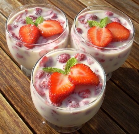 CREME AU CHOCOLAT BLANC ET FRAISES AU GINGEMBRE